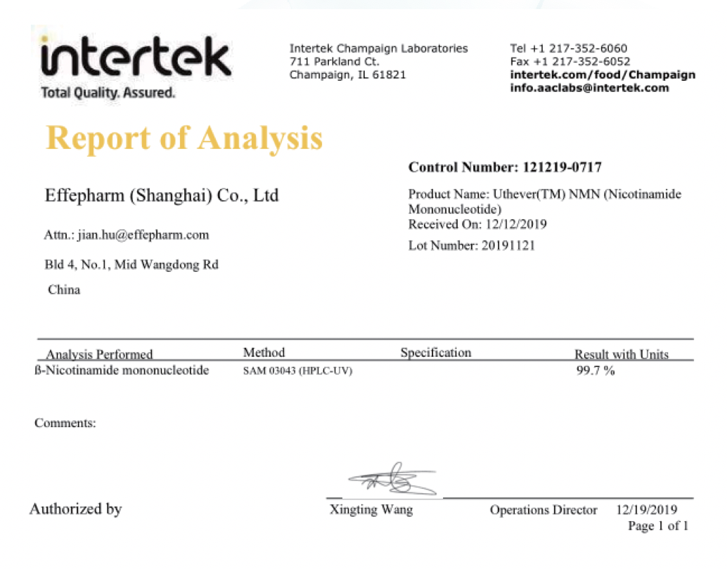 Daarnaast is de puurheid van het product getest door een onafhankelijke wereldleider op het gebied van certificering, namelijk Intertek. Hiernaast is het cetificaat weergegeven.